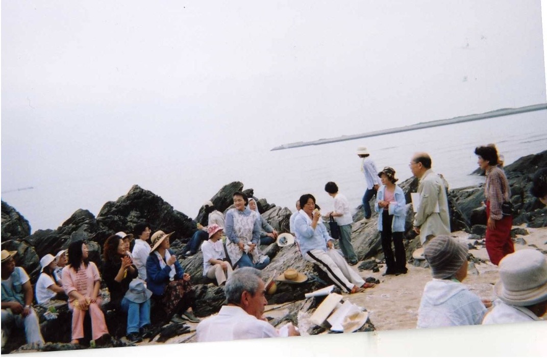 2004年からは自然と文化の学習会を開始し、2005年7月18日には、姥が懐の景観が島式漁港道路建設のために埋め立てられることを知り、「行橋の自然と文化を愛する会」に名称を変更。海岸線の保全と漁港道路の一部変更を求める署名活動を展開し、同年9月27日には4500名の署名を集め、行橋市議会に陳情を行いましたが、否決されました。しかし、「配慮をもって」という文言を得ることに成功しました。